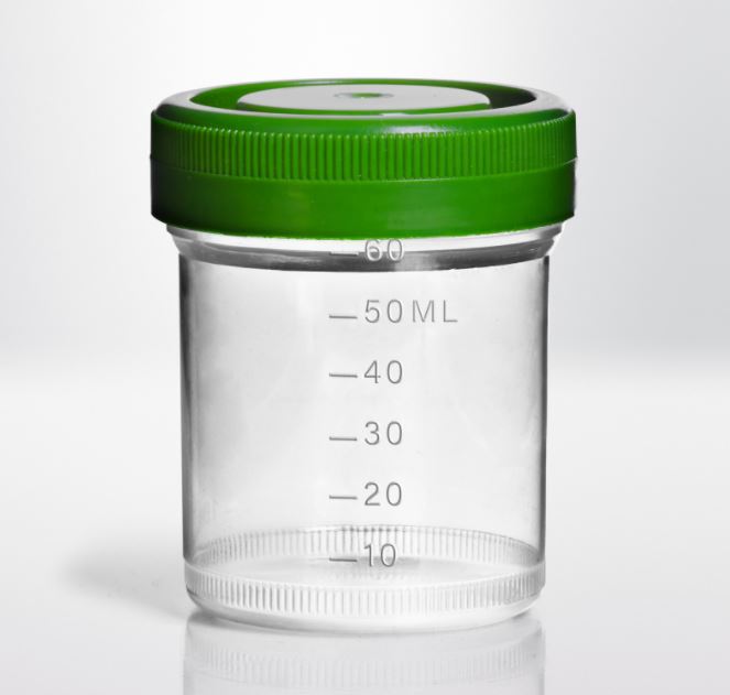 Burk med skruvkork PP 60 ml graderad steril 250st/fp